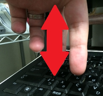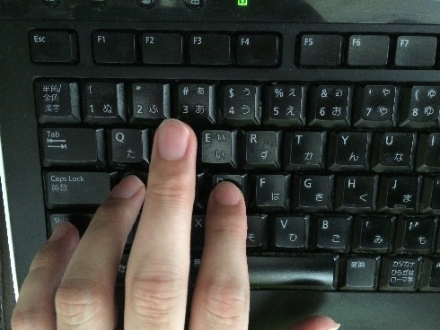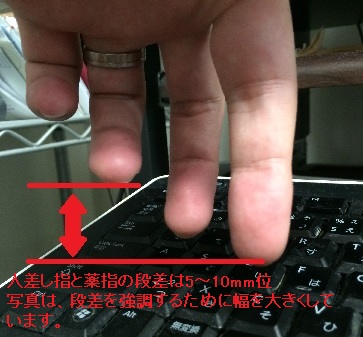 薬指でAを押したら、肘を使ってキーから指を真上に向かって離します。